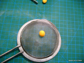 Now for the centers, take two small pea size balls of yellow gum-paste