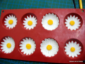 These are the gum-paste daisies I made for a recent cake.. I know that there are so many site showing you the same stuff. But since my blog is also my journal I thought - why not...! Besides you know how I like to do things a little different.