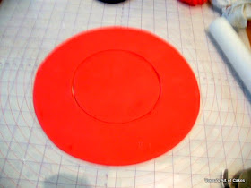 Roll out your gum paste. Using your plate as a guide cut out the brim's circumference first.