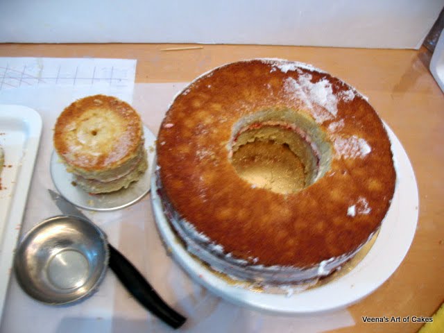 First layer, tort and fill your cakes as needed.