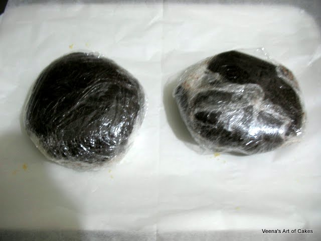 Divide your dough into two portions and place them on a piece of plastic or cling wrap.