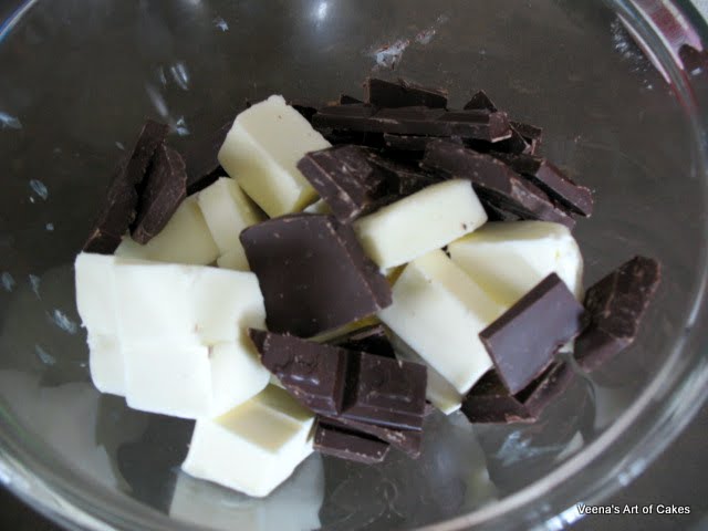 Break the Chocolate into small pieces, cut the butter into small pieces - use a microwave safe bowl.