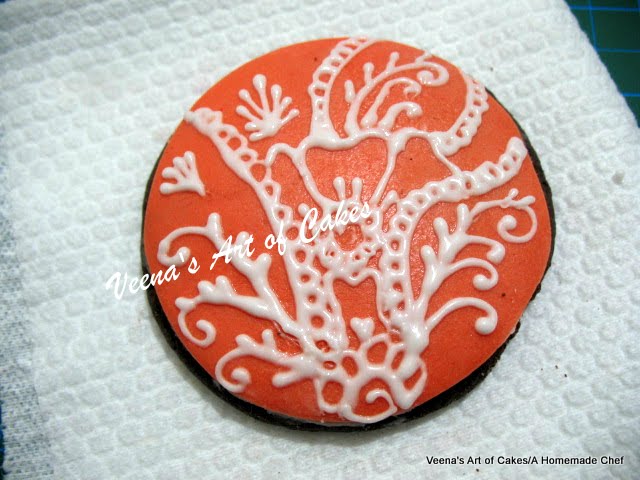 Next time I'll try something more elaborate and may be on a cake. The cookie is really small but a great way to practice.