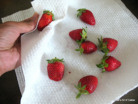 Wipe them really well. If your strawberries are not completely dry, any drop of water that falls into your chocolate will seize the chocolate..