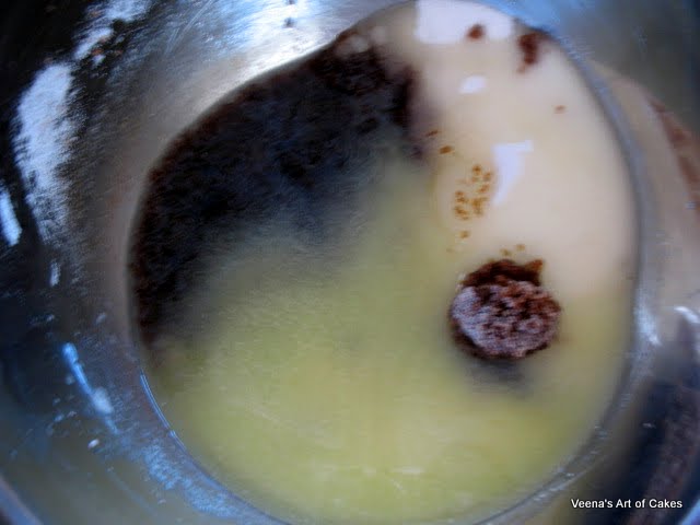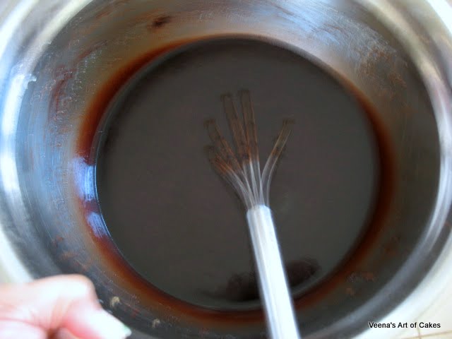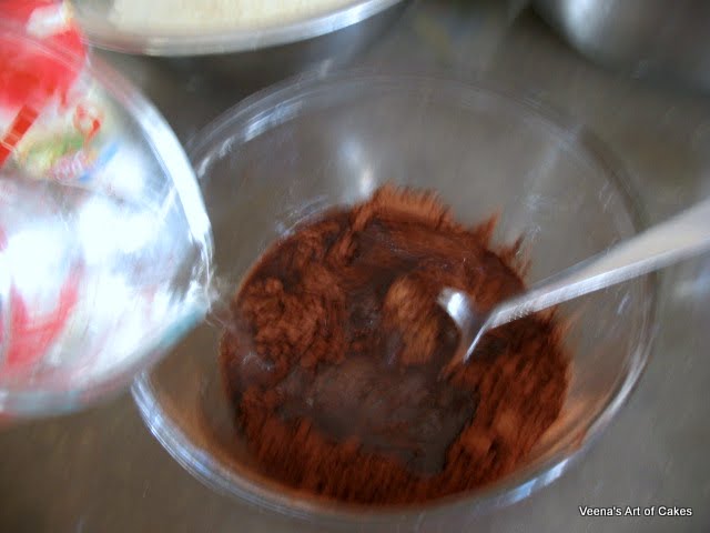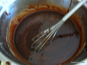 Add the cocoa mixture into the sugar mixture. Continue to stir melting the sugar