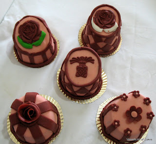 1. Excellent,classy and elegant mini cakes.I loved the designs abolutely gorgeous.It almost looks like those tospy turvy cakes.What is the size of these mini cakes.Did u shape the roses with the rose mould.Are these the redvelvet cakes.Thanks for your kind replies.