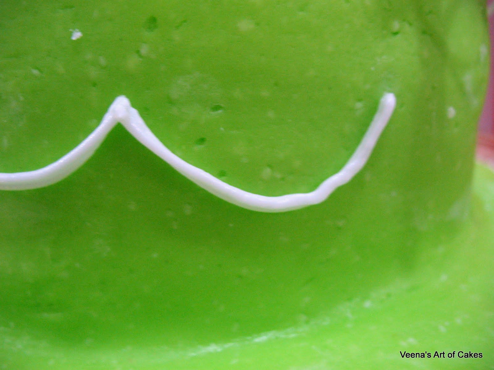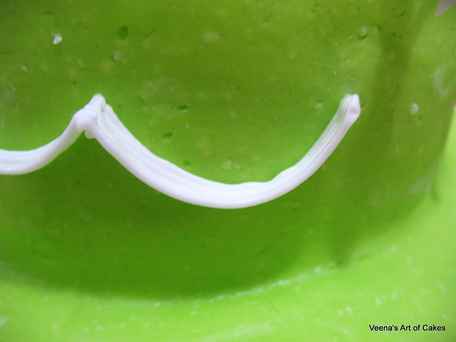 Here are two rows of scallops. If you doing it around the whole cake by the time you come around to the first, it would have dried. Here I'm doing only three so I did have to wait for a few minutes before I over piped.