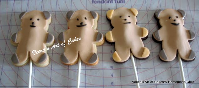 I did these teddy cookies for a friend's little girl who turned one. As with all little girls she loves the teddy and has a huge collection too.
