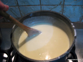 Place it back on the fire on low heat. Do not make haste with this step or you will have a very sweet scrambled egg for dessert.