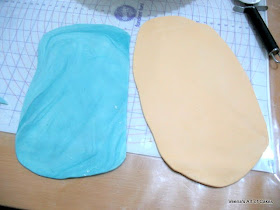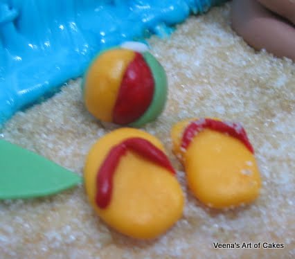 A small beach ball and slippers.. made free hand without an molds or tools...