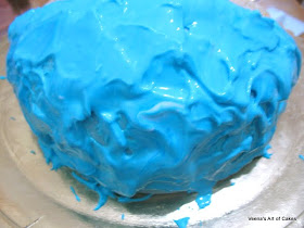 On the blue side of the cake I spread some blue royal icing with a spatula.
