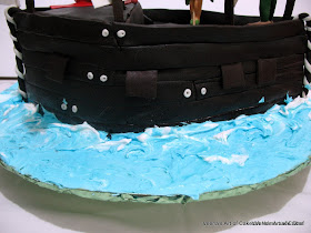 The sails are all made of gum paste and painted with black, I lustered the edges with silver pearls dust so they would stand out.