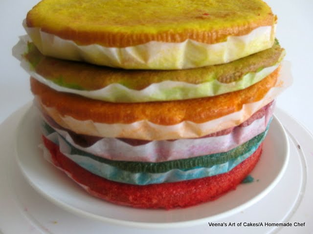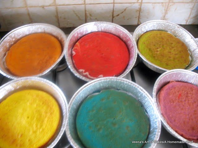 Obviously I do not have six cake pans of the same size - So, I used the baking foils that you get at super market or cake supply store.