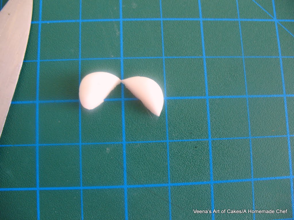 Roll the large white sugar past into a ball and flatten it such that it is less rounded.