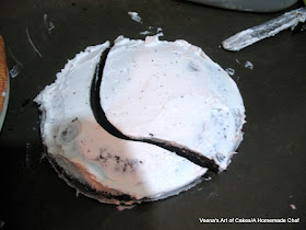 Here are a few progress pictures for you to see.... However, you can use this same carving method for many different designs. Often I get people who send me emails asking help with carving a specific cake. The truth is that it is very difficult to explain in words how to carve a specific cake.