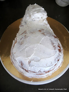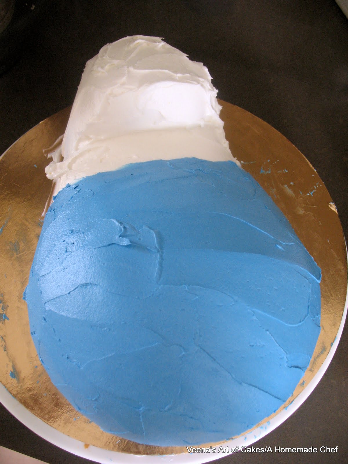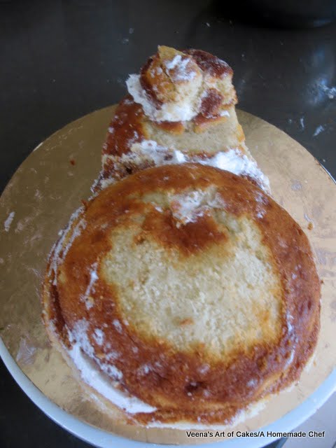 This is the 6" cake - I cut a big V right in the middle and used that V for the head/cap.