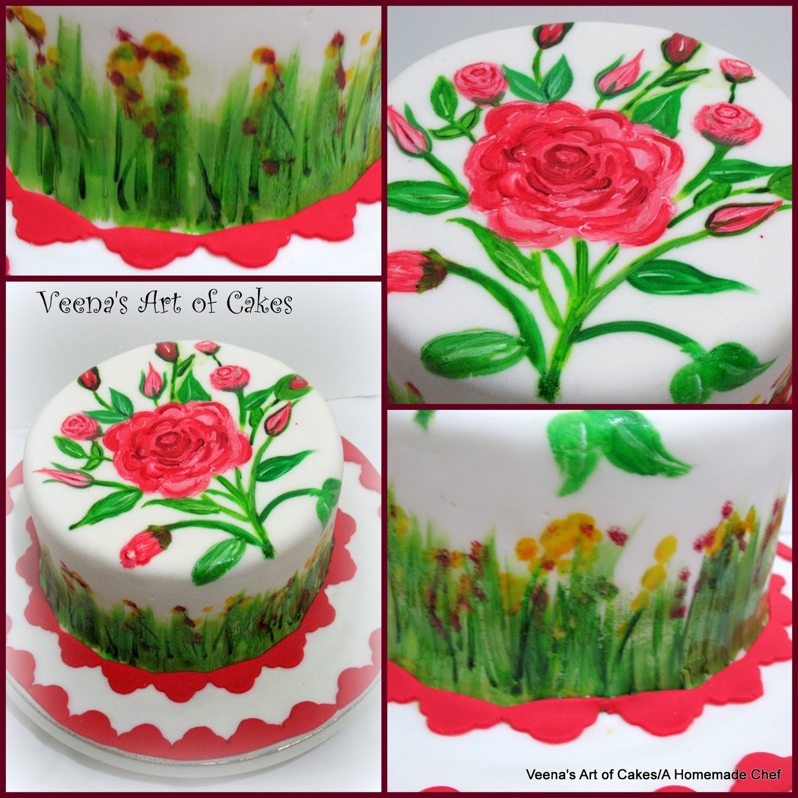 This is a gift cake I made for a friend and since I've been so fascinated with hand painting recently I decided to try it out.