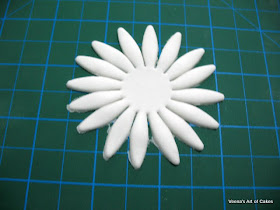 These are the gum-paste daisies I made for a recent cake.. I know that there are so many site showing you the same stuff. But since my blog is also my journal I thought - why not...! Besides you know how I like to do things a little different.